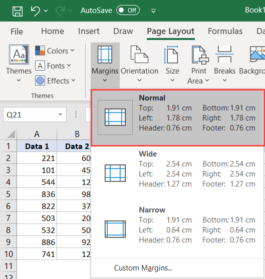Если вы хотите еще больше уменьшить поля страницы, нажмите на ленте опцию «Поля», а затем нажмите «Пользовательские поля». Откроется диалоговое окно «Параметры страницы», в котором вы можете дополнительно настроить поля.