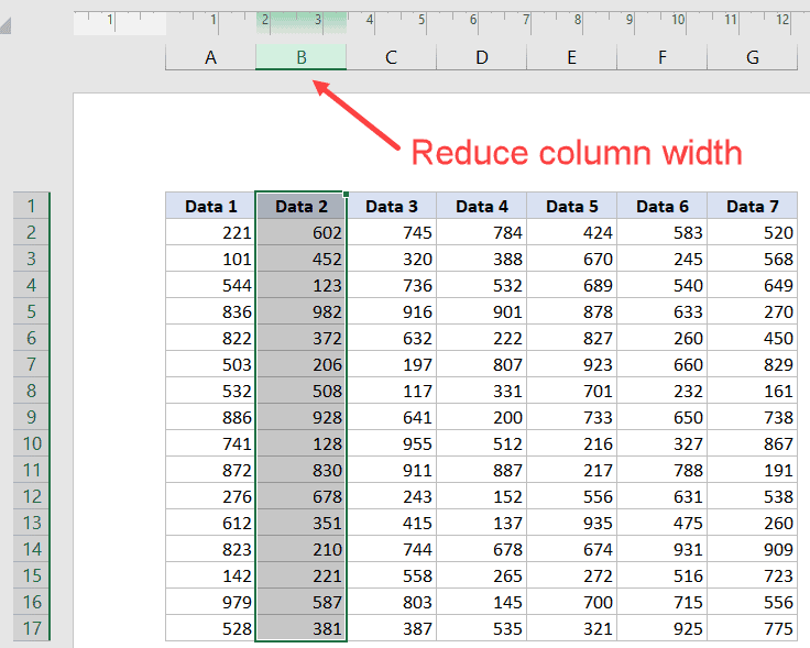 Ниже приведены инструкции по переходу в режим макета страницы и последующему уменьшению ширины столбца: