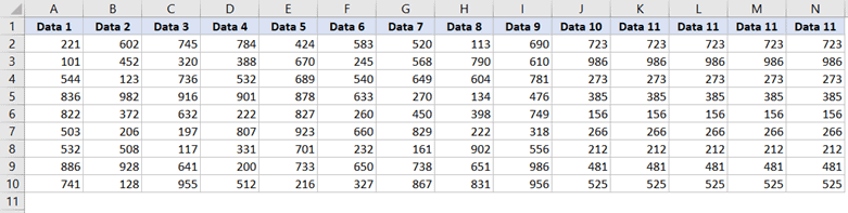 Если у вас больше столбцов, чем строк (как показано ниже), вы можете изменить ориентацию страницы на Альбомную, чтобы ваши данные уместились и были напечатаны на одной странице.
