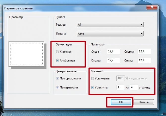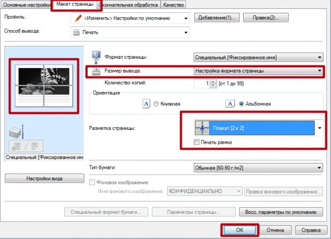 3. Укажите устройство, формат листа и макет страницы. Запустите процесс.