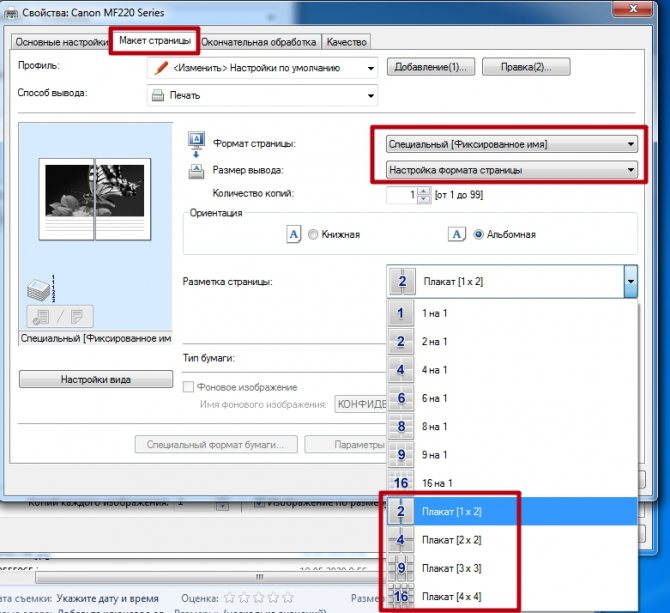 Настройки печати фотографий