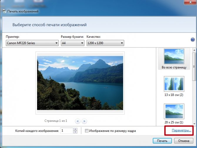Настройки печати фотографий на Windows 10