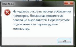 Иногда, открывая мастер добавления принтеров, пользователь сталкивается с проблемой. Система сообщает, что не выполняется локальная подсистема печати.