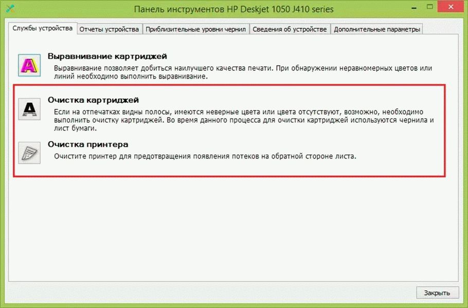 Запускается система несколько раз, но обязательно должны соблюдаться паузы от 5 до 15 минут. Если программа прочистки оказалось неэффективной, то следует промыть печатающую головку специальной сервисной жидкостью;- Если модель принтера подразумевает наличие двух картриджей, то ПГ находится в картридже. Попробуйте промыть головку по инструкции. Если результат не увенчался успехом, то потребуется замена картриджа;
